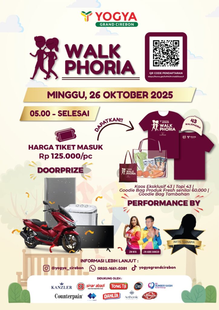 HEALTHY WALK WITH EUPHORIA Minggu, 26 Oktober 2025 Pukul: 05.00 AM Pintu Masuk Yogya Grand Cirebon Normal : Rp.125.000 /