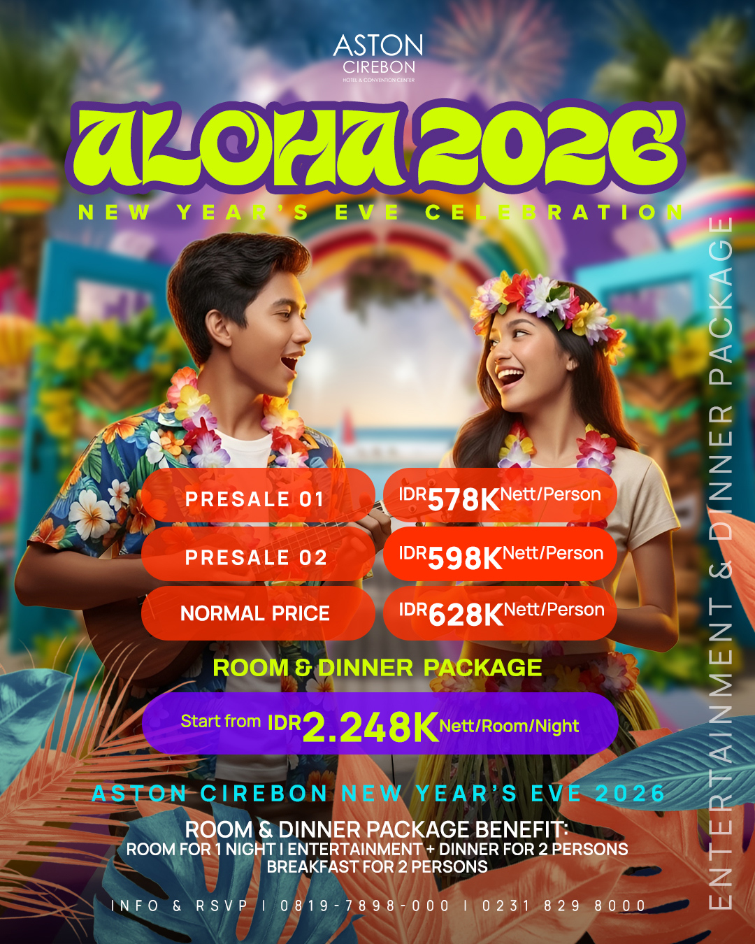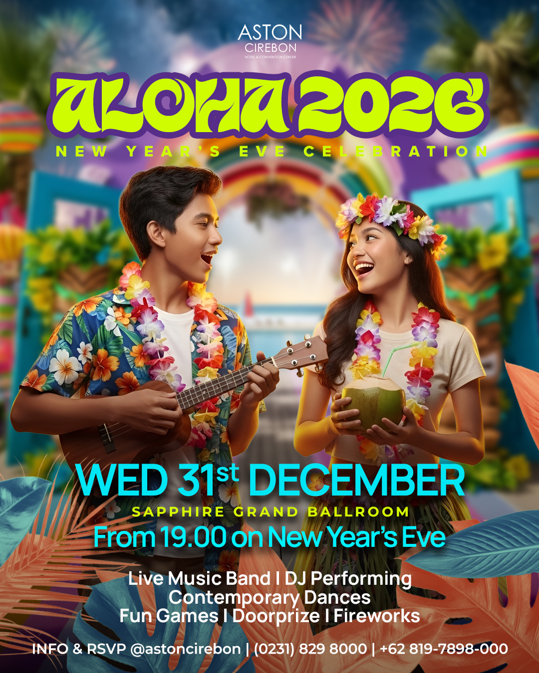 Rayakan New Year’s Eve 2026 di Aston Cirebon dengan konsep special ALOHA 2026.