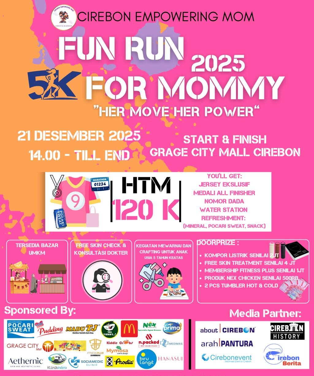 - Penukaran Racepack dilakukan di Grage City Mall (UPDATE : Waktu Pengambilan Racepack akan diinfokan di IG @cirebonempoweringmom)
